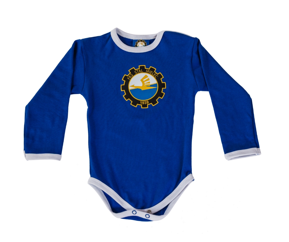 Dla najmłodszych kibiców FKS Stal Mielec, niebieskie body niemowlęce z białymi wykończeniami, długim rękawem oraz herbem na środku to idealny wybór dla każdego małego fana. Bawełna zapewnia komfort i miękkość. Stalowe body jest doskonałym prezentem dla przyszłych kibiców!