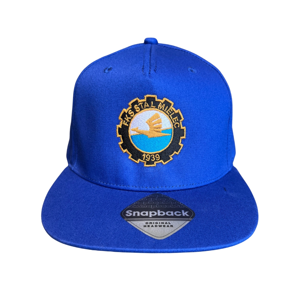 Czapka z daszkiem typu snapback to czapka z prostym daszkiem oraz z plastikowymi paskami z zapięciami, które umożliwiają przyczepienie czapki do plecaka. Posiadają też charakterystyczne dla bejsbolówki zapięcie z tyłu głowy z regulacją za pomocą wygodnych w użyciu zatrzasków. Czapka w kolorze niebieskim, wyszywana herbem oraz nazwą klubu FKS Stal Mielec.