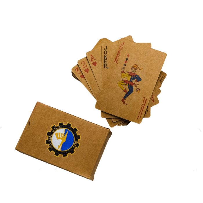 Talia kart EKO do gry. Wykonane z papieru razem z pudełkiem logowanym herbem FKS Stal Mielec.