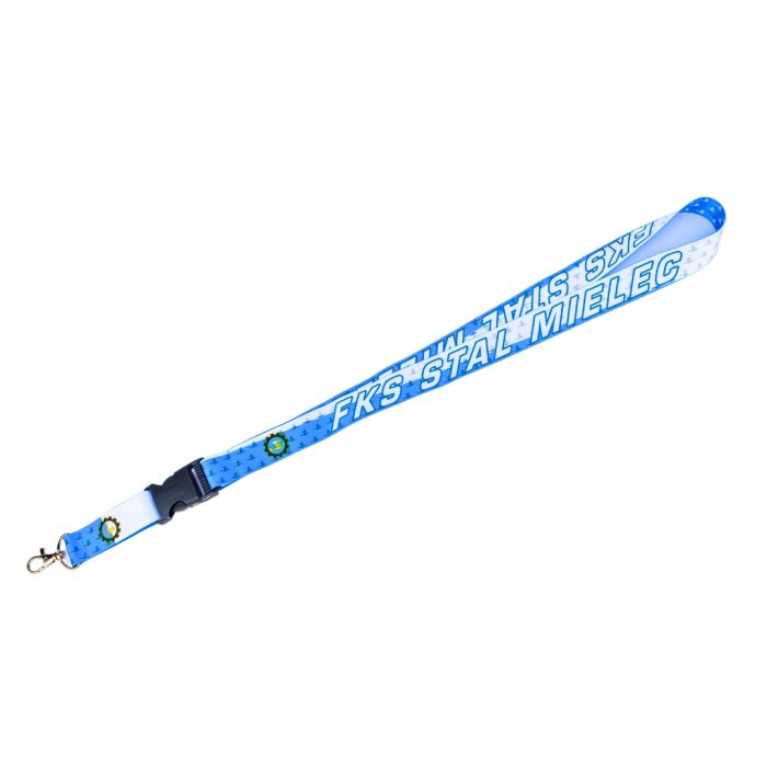 Smyczka granatowa „FKS STAL MIELEC” o długości całkowitej 58 cm. Logowana herbem oraz nazwą klubu.