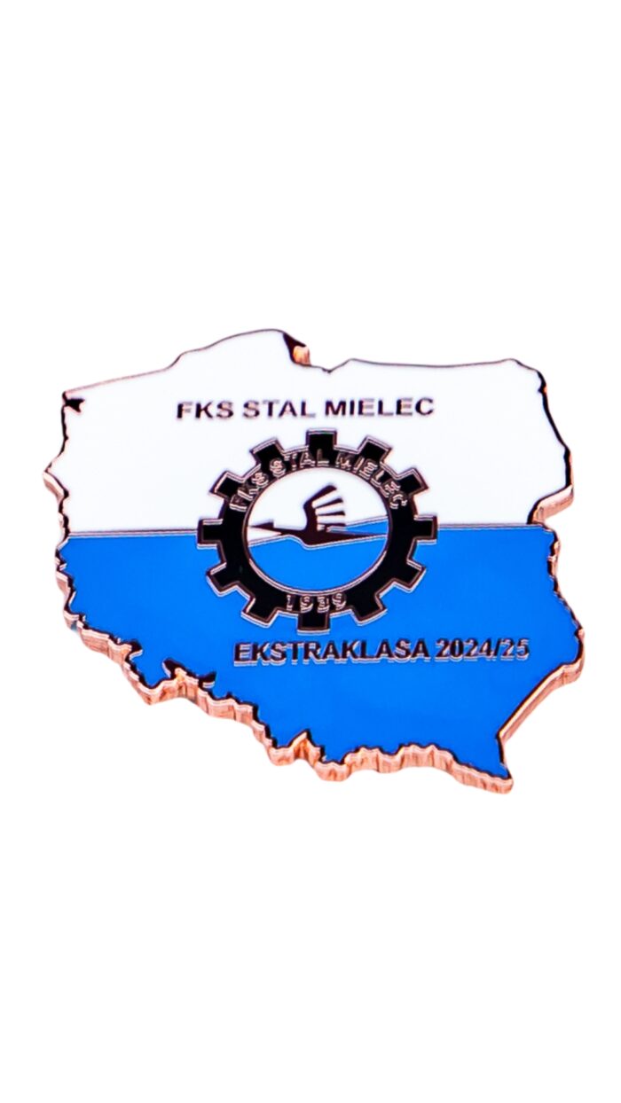 Odznaka FKS STAL MIELEC EKSTRAKLASA 2024/25 o miedzianym kolorze metalu.