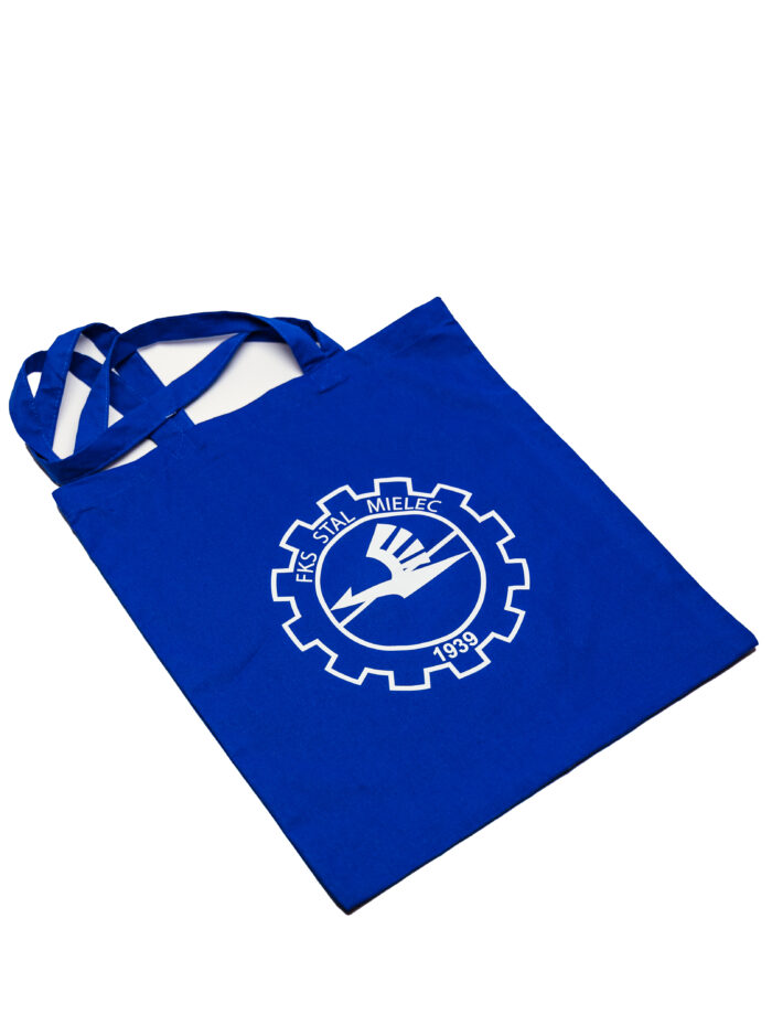 Torba bawełniana niebieska herb to idealny dodatek do twoich codziennych stylizacji. Nada się na zakupy, trening, do pracy czy dodatek do prezentu. Na torbie widoczny biały herb FKS Stal Mielec.