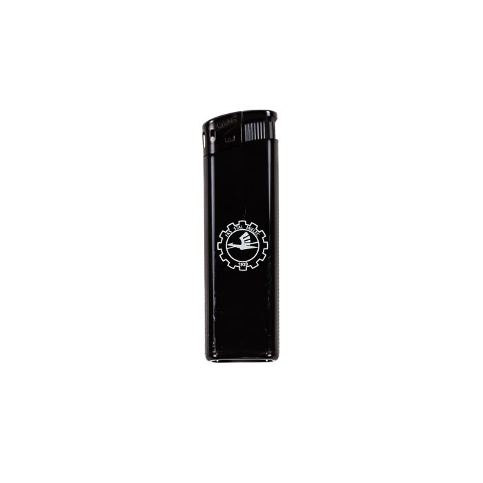 Zapalniczka gazowa czarna z białym nadrukiem logo naszego klubu.
