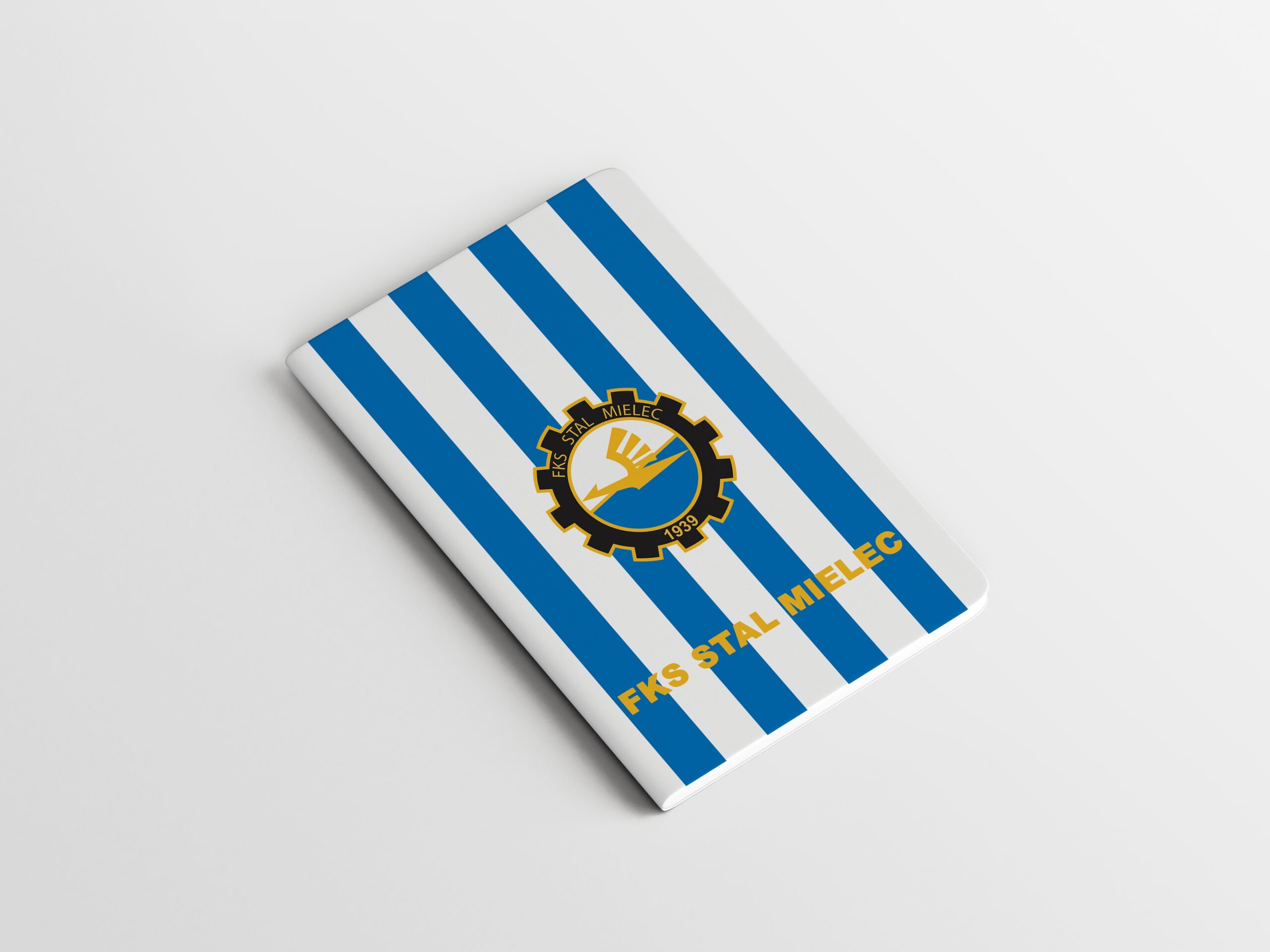 Nowy zeszyt FKS Stal Mielec w biało-niebieskie pasy.