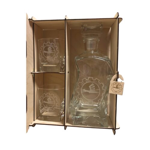 SKRZYNKA Z KARAFKĄ ORAZ 2 SZKLANKAMI